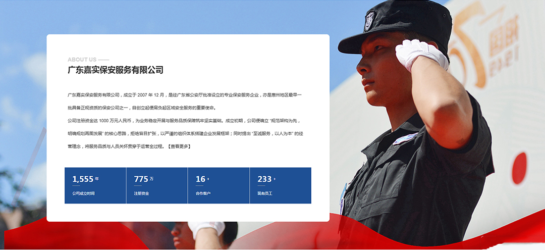 广东嘉实保安服务有限公司,成立于 2007 年 12 月,是经广东省公安厅批准设立的专业保安服务企业,亦是惠州地区最早一批具备正规资质的保安公司之一,自创立起便肩负起区域安全服务的重要使命。